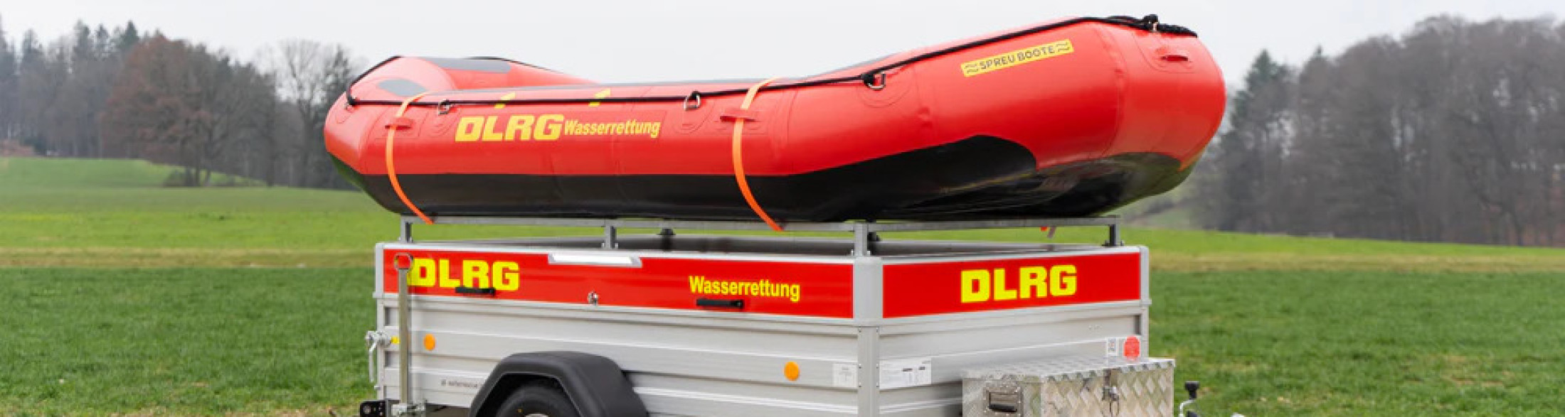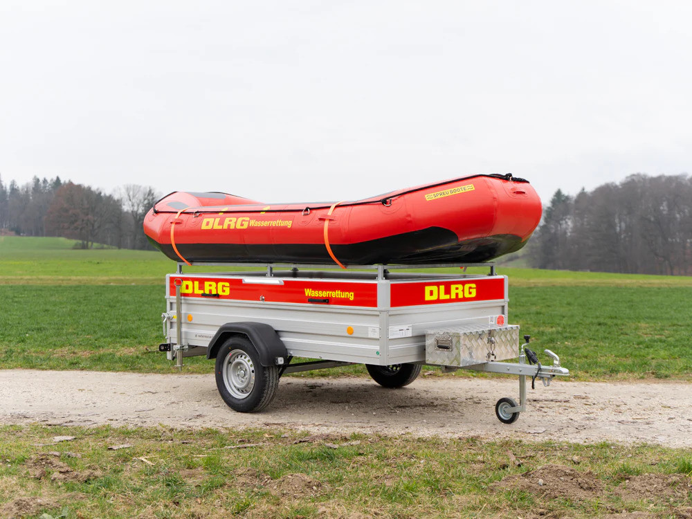 DLRG Raft 400 Typ 3 inkl. Zubehör, Schleifkorbtrage, Spineboard, Seilsätze, sonstige Strömungsretter-Ausrüstung